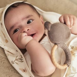 Przyjemne w dotyku faktura gryzaka ukoi rozpulchnione dziąsełka.
