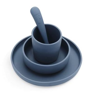 Jollein silikonowa zastawa do nauki samodzielnego jedzenia 4 szt Jeans Blue